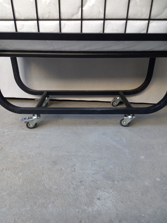 این تختخواب با بدنه فلزی محکم و سبک با رنگ کورهای ساخته شده و دوام بالا و کیفیت تضمینی محصول را تضمین میکند. همچنین، با چرخهای فلزی ترمزدار، جابجایی آسان و ایمن حتی در فضاهای کوچک ممکن است.