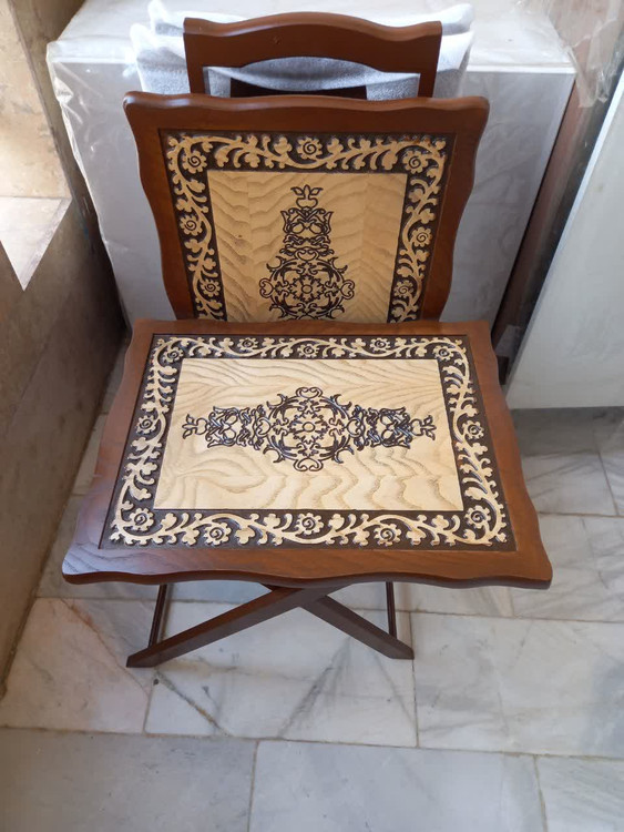 میز عسلی تاشو چمدانی طرح منبت مستطیل