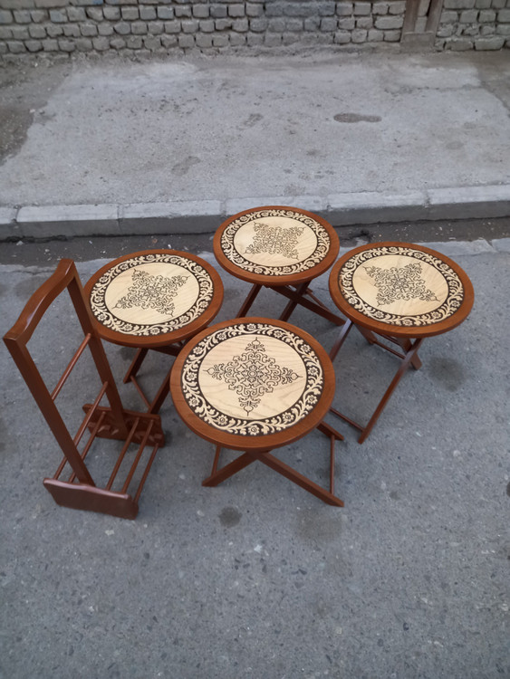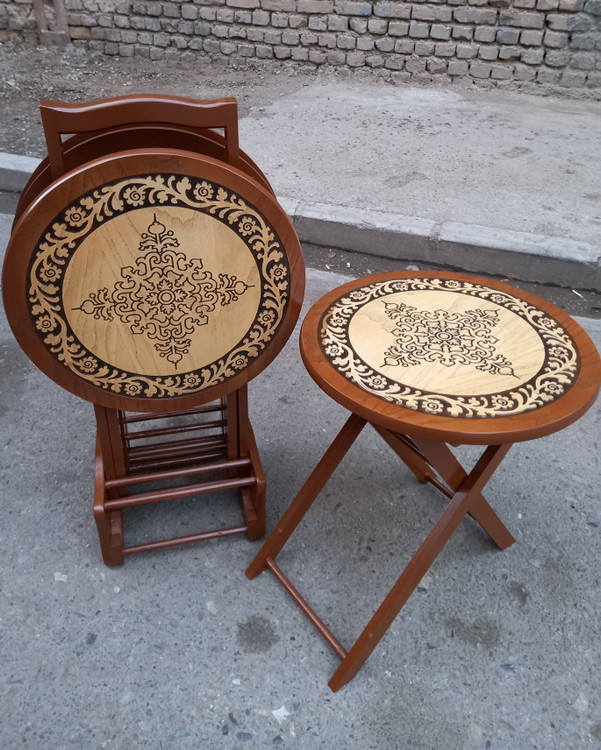 میز عسلی جلومبلی چمدانی تاشو منبت طرح گرد